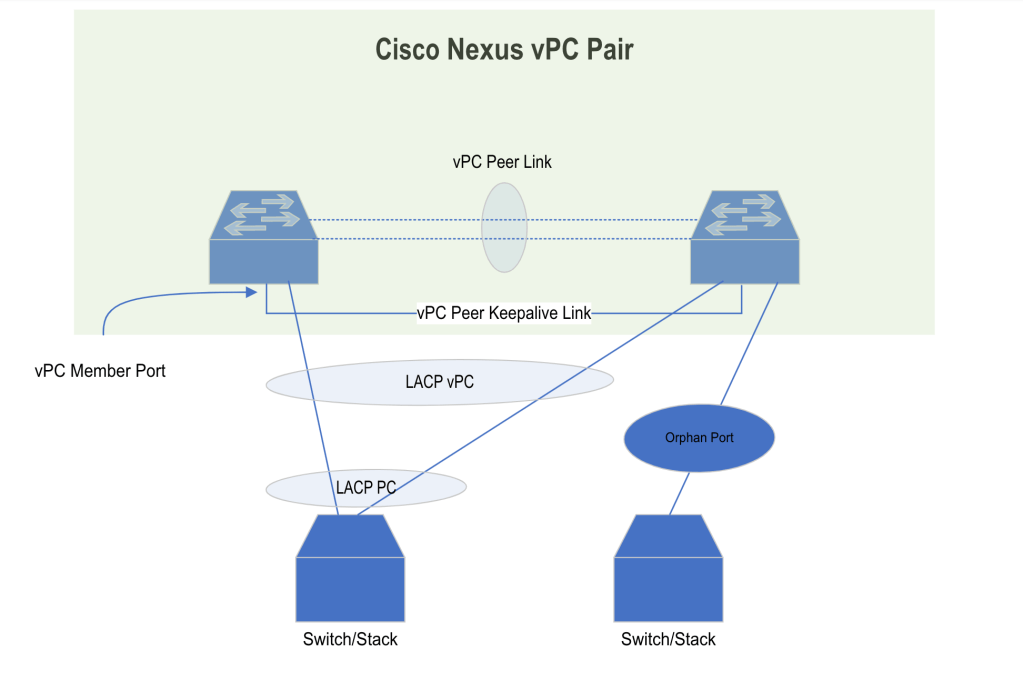 - The two switches joined in a vPC domain to complete the vPC architecture.