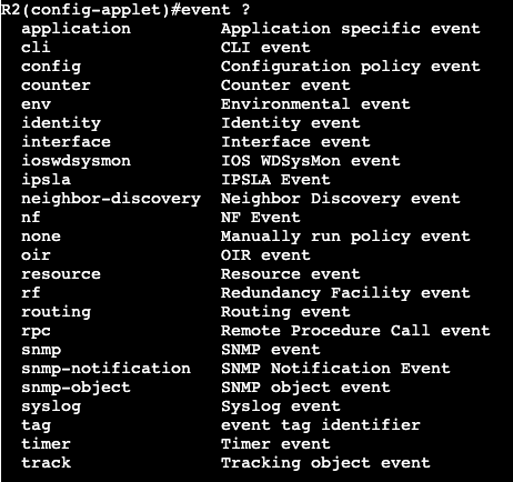 - Way to trigger action when an event occurs on most Cisco IOS/IOS-XE/Cisco Flavor devices.