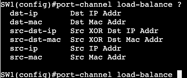 - Once verified, load balancing can be changed via ‘port-channel load-balance <method>