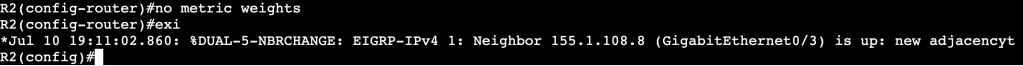 - EIGRP Classic Bandwidth is 10^7 * 256/Interface Bandwidth