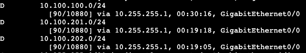 10.255.255.0/30 is a transit network that can be ignored, but the routes starting in 10.100.x.x will now be summarized with the below command.