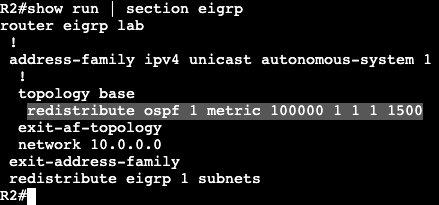Next step is doing a summarization on the ASBR via redistribution. On R1 there are the following interfaces being advertised into EIGRP AS 1.