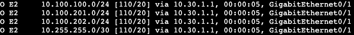 Now in R3’s routing table we’ll find E2 routes for the redistributed EIGRP routes outside of OSPF.