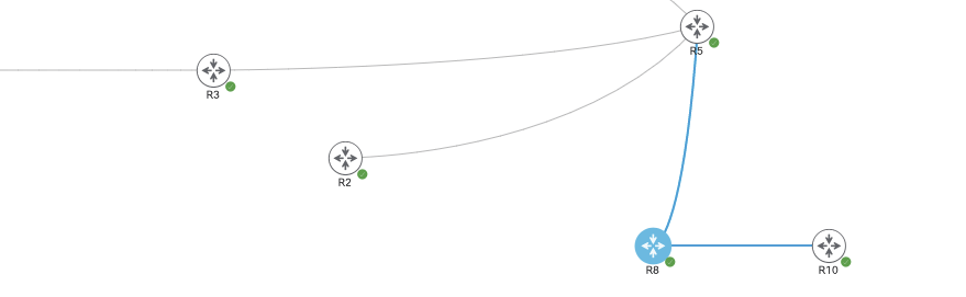 If we look at the ‘normal’ EBGP peering to R8 however, the path to these destinations all appear to be coming from AS 100.