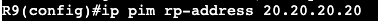 Next step is to have all the routers in the topology pointing to 20.20.20.20 for their PIM RP mapping. This command will be applied to all routers.