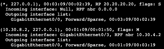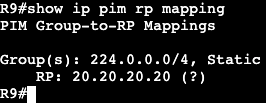 Now to verify the routers are using 20.20.20.20 as their RP, the command is run below.