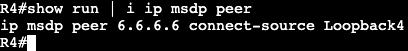 When R9 begins pinging 227.0.0.1, R6 receives a PIM Register message that gets passed on to its peer R4 via MSDP Source Active (SA).