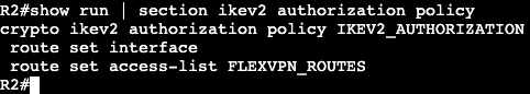 - AAA authorization settings (IKEv2 Routing)(‘aaa new-model’)