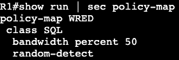 And above we’re adding a bandwidth guarantee and then specifying ‘random-detect’ for WRED.