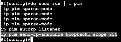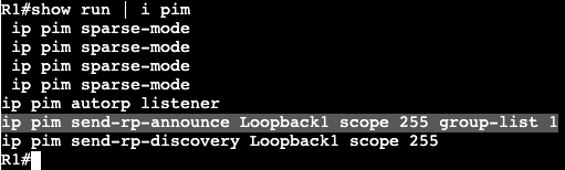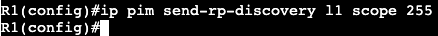 In this environment the router R1 will become the RP. On R1 we’ll first need to allow the router to send RP announcements. We’ll be sending these announcements out via interface Loopback1 and the scope will be a TTL of 255.