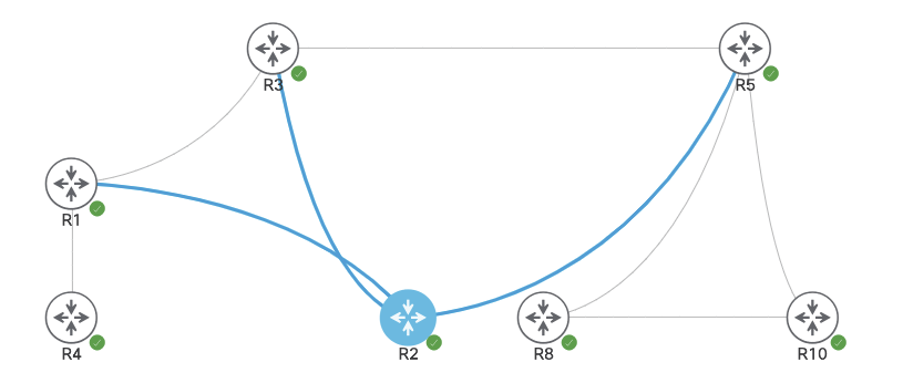 The ORF process can be configured with a prefix-list and then adding capability and prefix-list to a BGP neighbor statement. On R8 below we’re receiving all BGP routes from ASN 200 and 100 from R5. If we wanted to filter down to receiving one subnet from R5, 1.1.1.0/24, we specify that in the prefix list.